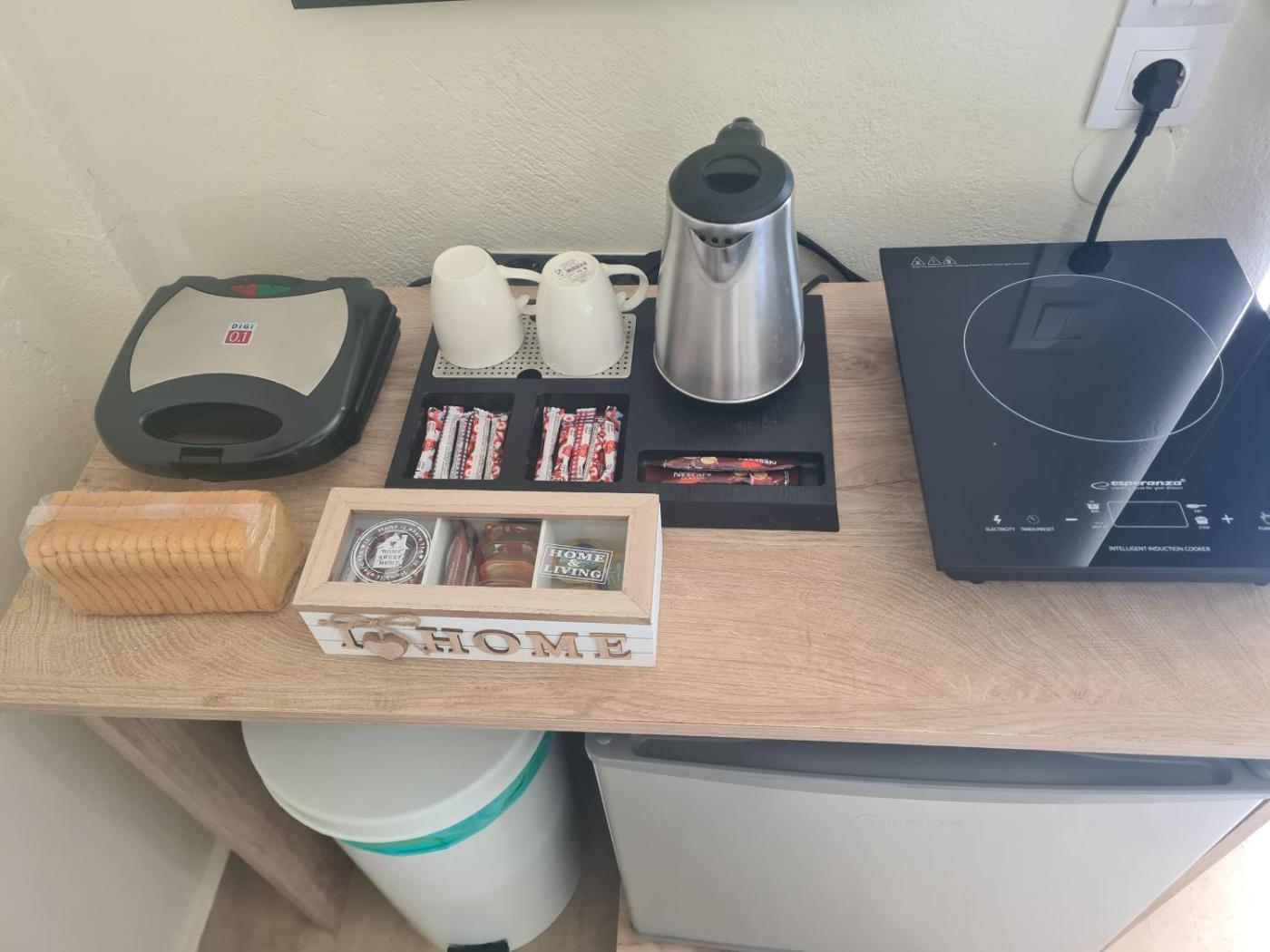 Double or Twin Room. In the kitchen, guests will find a stovetop, a refrigerator, kitchenware and an electric kettle. The twindouble room offers air conditioning, soundproof walls, a terrace with sea views as well as a private bathroom boasting a bath. The unit has 3 beds. ;