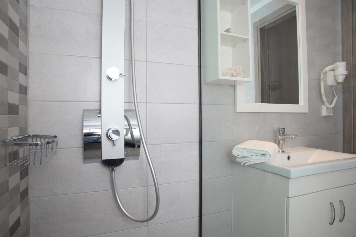 Deluxe Apartment. Featuring a private entrance, this air-conditioned apartment comprises 1 living room, 1 separate bedroom and 1 bathroom with a walk-in shower and a hairdryer. Guests can make meals in the kitchen that is equipped with a stovetop, a refrigerator, kitchenware and an electric kettle. Boasting a terrace with sea views, this apartment also provides a seating area and a flat-screen TV. The unit offers 2 beds.