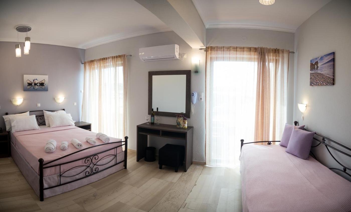 Triple Room with Sea View. This air-conditioned triple room is comprised of a flat-screen TV with satellite channels, a private bathroom as well as a balcony with sea views. The unit has 2 beds.