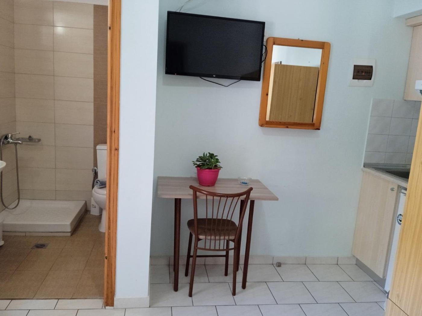 Apartment. The air-conditioned apartment has 1 bedroom and 1 bathroom with a shower and a hairdryer. Guests can make meals in the kitchen that features a stovetop, a refrigerator and kitchenware. Boasting a terrace with sea views, this apartment also features a wardrobe and a flat-screen TV. The unit has 1 bed. ;